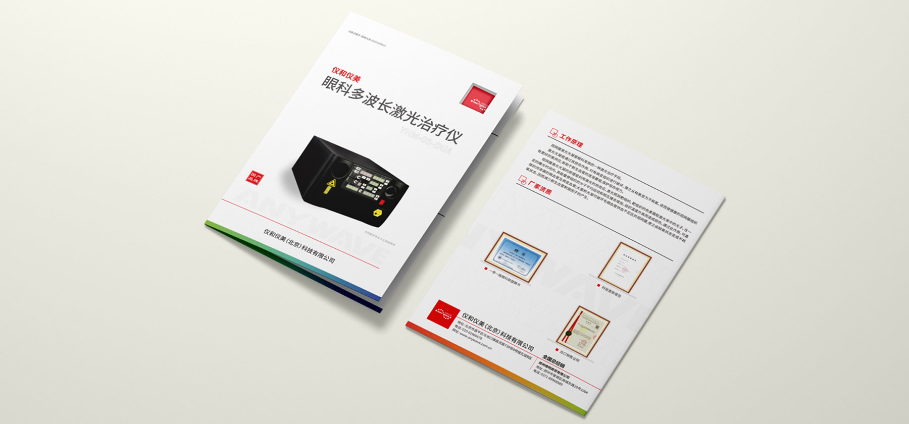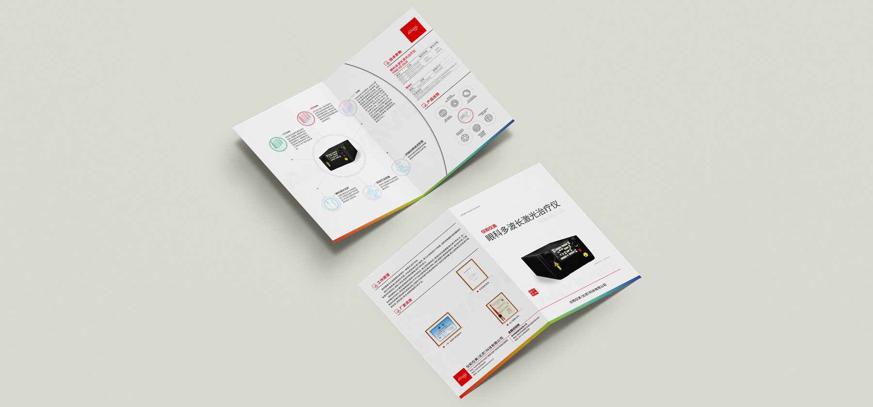 該折頁設計采用了封面模切的工藝,鏤空之后透出底部logo的效果。對企業(yè)形象有個很好的展示效果。在整個畫面的展示中也體現出激光的重要性。