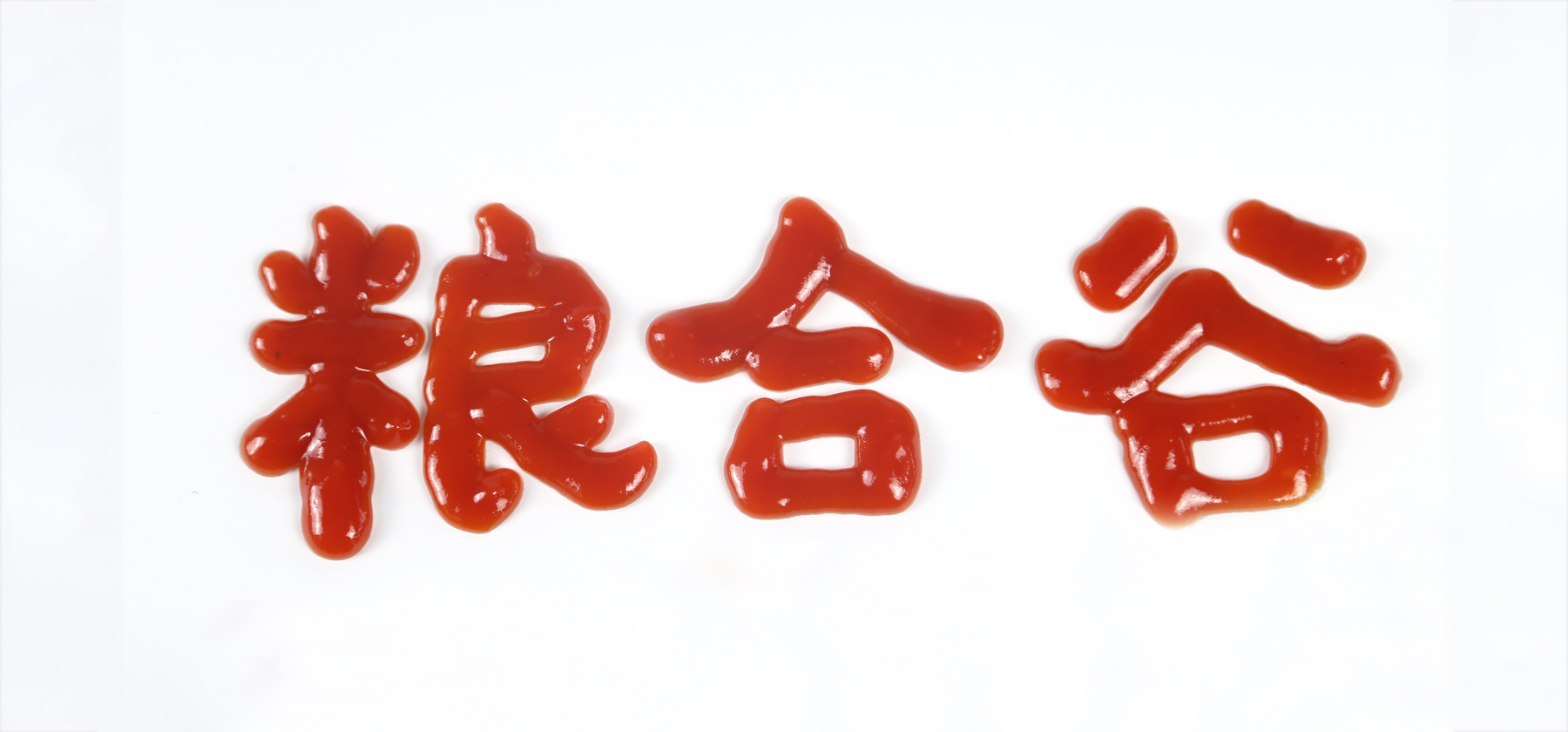 封面上糧合谷三個字也是設計師自己用番茄醬在白紙上擠出來,模仿了最真實的效果,后期印刷時用的工藝是激凸加上UV,效果十分的逼真。